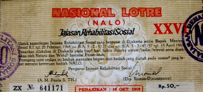 Tahun 1965, Presiden Soekarno mengeluarkan Keppres No 113 Tahun 1965 yang menyatakan lotre buntut merusak moral bangsa dan masuk dalam kategori subversi. Memasuki Orde Baru, lotre ini terus berkembang. Tahun 1968, Pemda Surabaya mengeluarkan Lotto (Lotre Totalisator) PON Surya yang tidak ada kaitannya dengan penyelenggaraan olahraga, hanya berdasarkan undian. Tujuannya menghimpun dana bagi PON VII yang akan diselenggarakan di Surabaya tahun 1969.