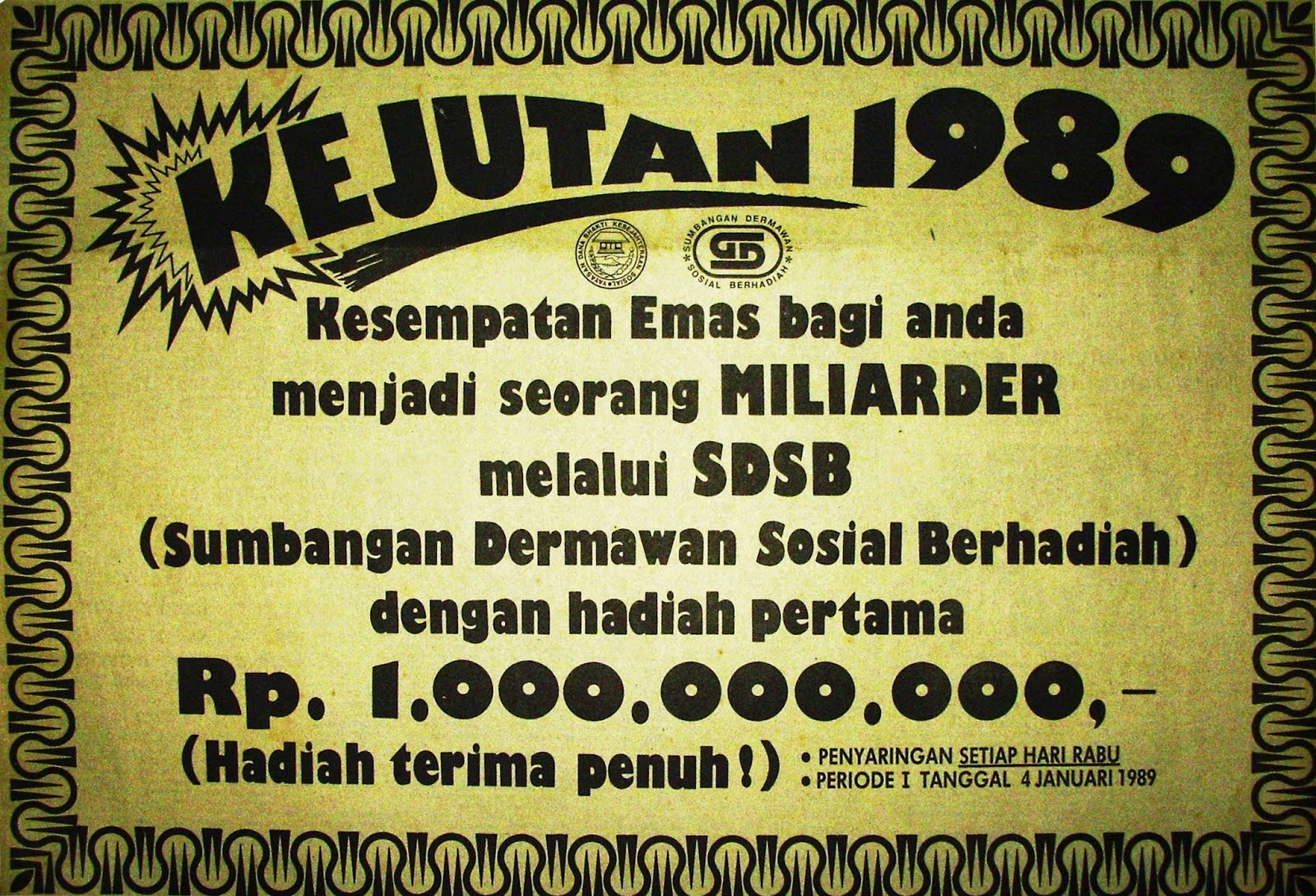 Pertengahan bulan Juli 1988, Mensos Dr Haryati Soebadio dalam rapat kerja dengan Komisi VIII DPR menegaskan, kupon KSOB dan TSSB tahun 1988 diperkirakan menyedot Rp 962,4 miliar dana masyarakat. Artinya, meningkat empat kali dibandingkan dengan hasil penjualan tahun 1987. Tanggal 1 Januari 1989, SOB dan TSSB dihentikan dan diganti permainan baru bernama Sumbangan Dermawan Sosial Berhadiah (SDSB). Tujuan SDSB, menyumbang dengan beriktikad baik dan terbagi atas dua macam kupon; Kupon A seharga Rp 5.000 dengan hadiah Rp 1 miliar, dan Kupon B seharga Rp 1.000 dengan hadiah Rp 3,6 juta. Kedua kupon ini ditarik seminggu sekali setiap hari rabu dengan jumlah yang diedarkan 30 juta lembar (Kupon A sebanyak 1 juta lembar dan Kupon B sebanyak 29 juta lembar).