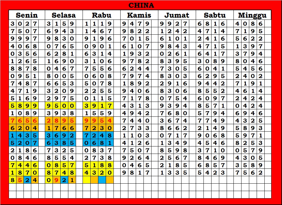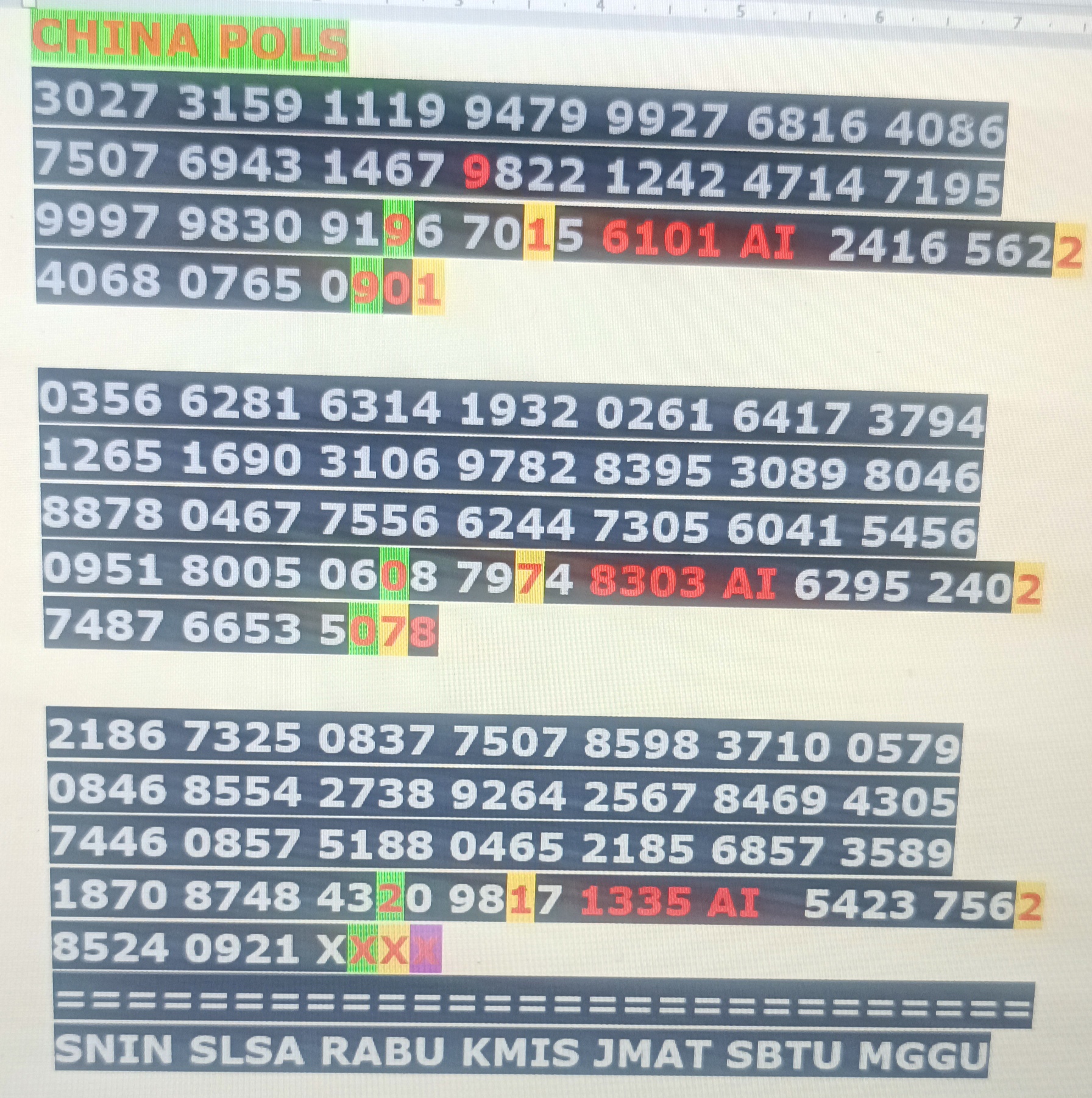 MASTER CHINAPOOLS Jumat, 30-01-2026 Merupakan Prediksi Otomatis yang menggabungkan Metode Kalender Togel Dengan Rumus-rumus kontrol yang sudah terbukti keakuratanya.Gunakan Aplikasi Rekap untuk mendapatkan LN TOP. Harap Maklum Jika kadang meleset MASTER CHINAPOOLS kita. Jadikan ini sebagai perbandingan saja dan tetap UPS