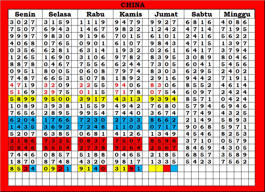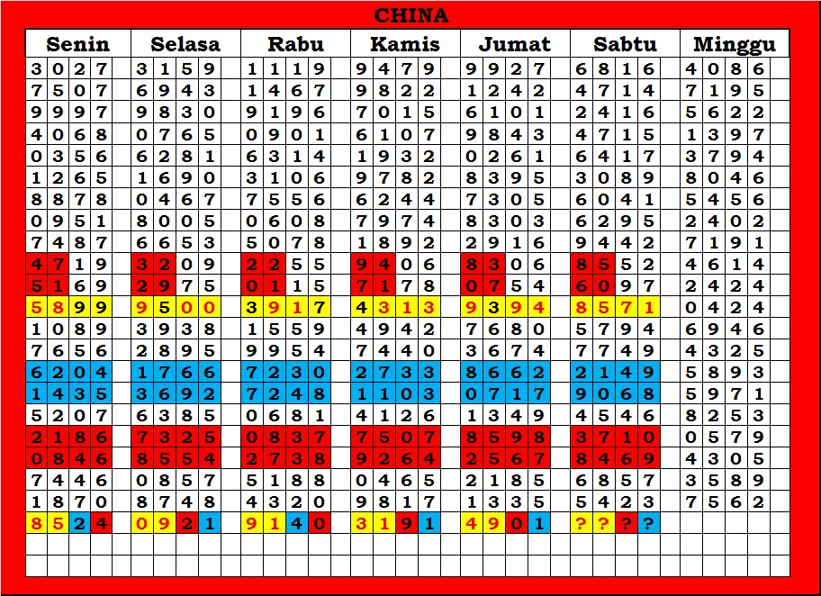 MASTER CHINAPOOLS Jumat, 30-01-2026 Merupakan Prediksi Otomatis yang menggabungkan Metode Kalender Togel Dengan Rumus-rumus kontrol yang sudah terbukti keakuratanya.Gunakan Aplikasi Rekap untuk mendapatkan LN TOP. Harap Maklum Jika kadang meleset MASTER CHINAPOOLS kita. Jadikan ini sebagai perbandingan saja dan tetap UPS