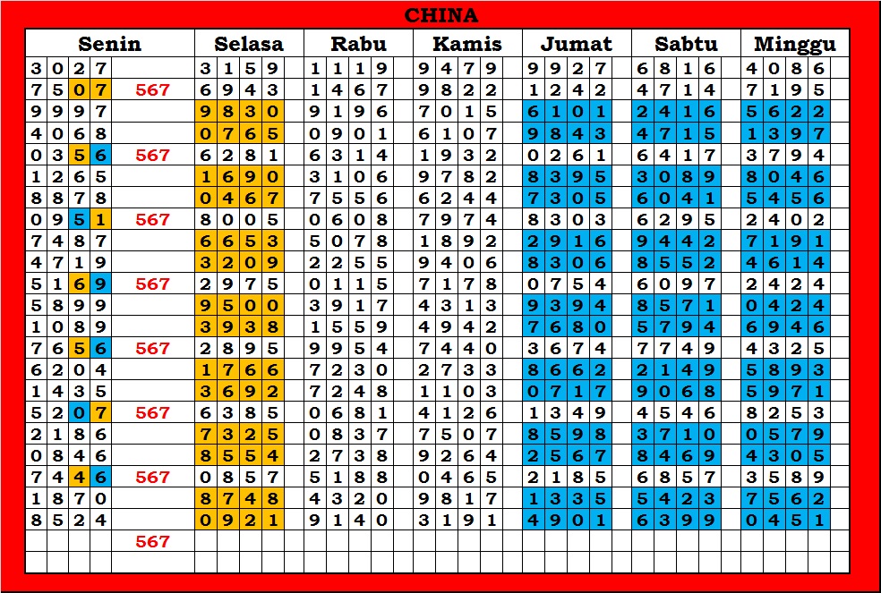 MASTER CHINAPOOLS Jumat, 30-01-2026 Merupakan Prediksi Otomatis yang menggabungkan Metode Kalender Togel Dengan Rumus-rumus kontrol yang sudah terbukti keakuratanya.Gunakan Aplikasi Rekap untuk mendapatkan LN TOP. Harap Maklum Jika kadang meleset MASTER CHINAPOOLS kita. Jadikan ini sebagai perbandingan saja dan tetap UPS