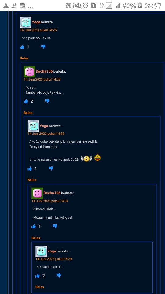 semua postingan komentar SARA, politik, saling menghujat serta saling merendahkan antara prediktor satu dengan yang lainnya jika kami lagi OL mohon maaf langsung kami hapus dan jika telah diperingatkan masih mengulang kami lock datanya
