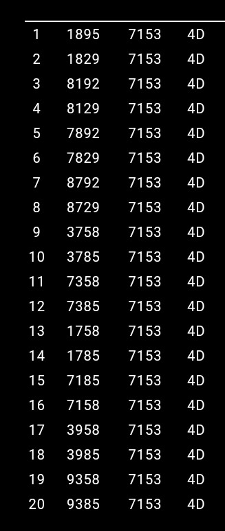 4d,3dd.3db.2dd.2dt.2db.