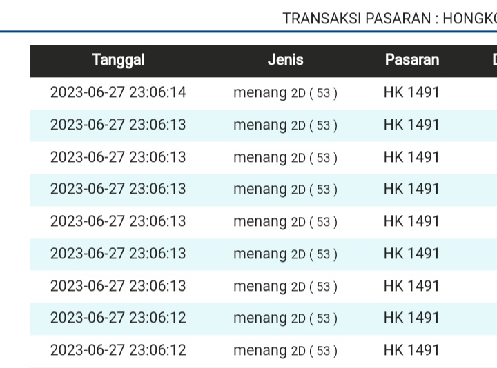 | TABEL DATA HKG VERSI 6D TAHUN 2010 HINGGA SEKARANG |