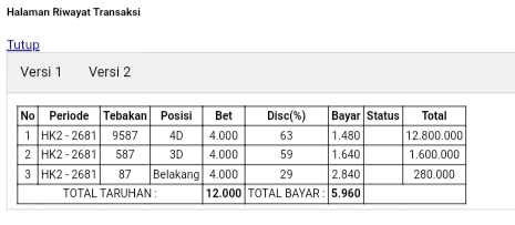 | TABEL DATA HK VERSI 4D TAHUN 2004 HINGGA SEKARANG |