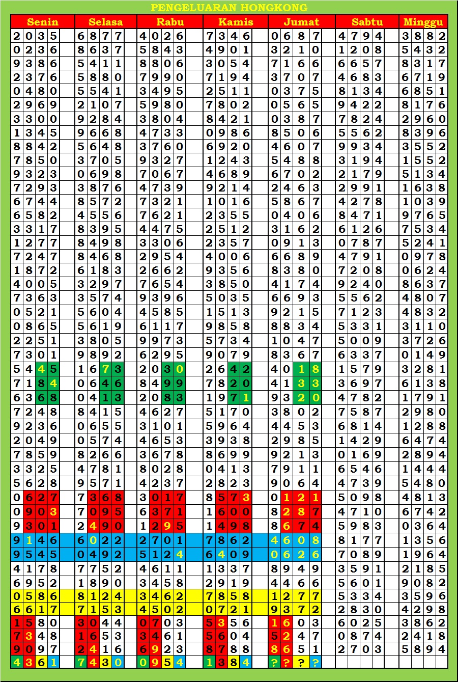 MASTER HONGKONG Jumat, 06-02-2026 Merupakan Prediksi Otomatis yang menggabungkan Metode Kalender Togel Dengan Rumus-rumus kontrol yang sudah terbukti keakuratanya.Gunakan Aplikasi Rekap untuk mendapatkan LN TOP. Harap Maklum Jika kadang meleset MASTER HONGKONG kita. Jadikan ini sebagai perbandingan saja dan tetap UPS