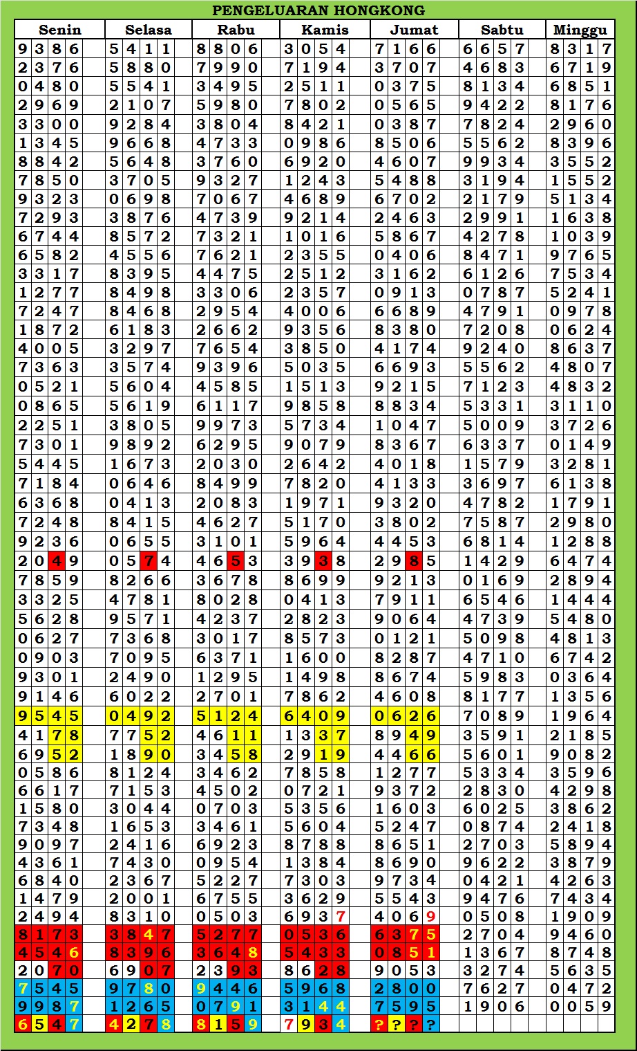 MASTER HONGKONG Kamis, 05-02-2026 Merupakan Prediksi Otomatis yang menggabungkan Metode Kalender Togel Dengan Rumus-rumus kontrol yang sudah terbukti keakuratanya.Gunakan Aplikasi Rekap untuk mendapatkan LN TOP. Harap Maklum Jika kadang meleset MASTER HONGKONG kita. Jadikan ini sebagai perbandingan saja dan tetap UPS