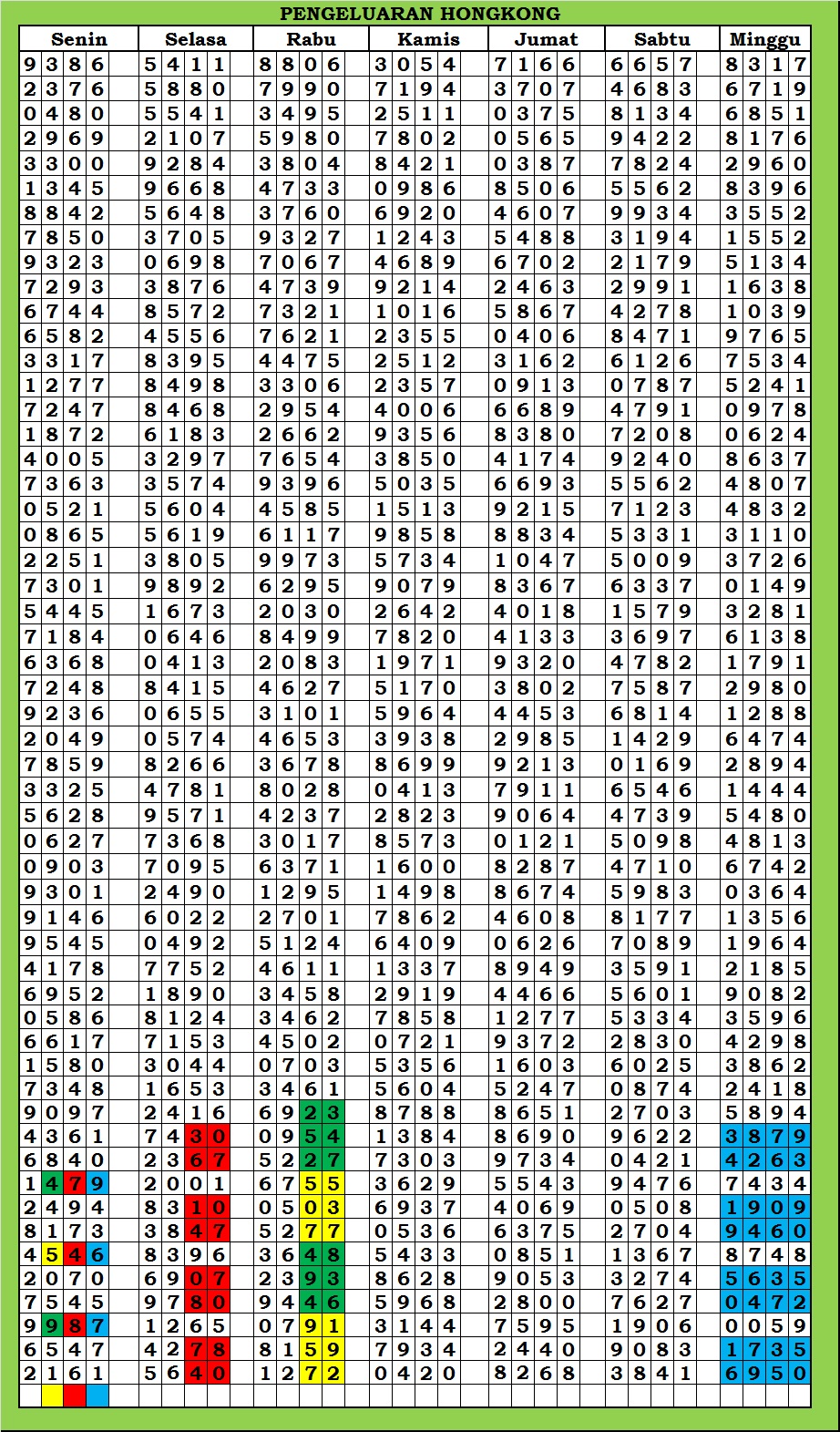 | TABEL DATA HKG VERSI 6D TAHUN 2010 HINGGA SEKARANG |