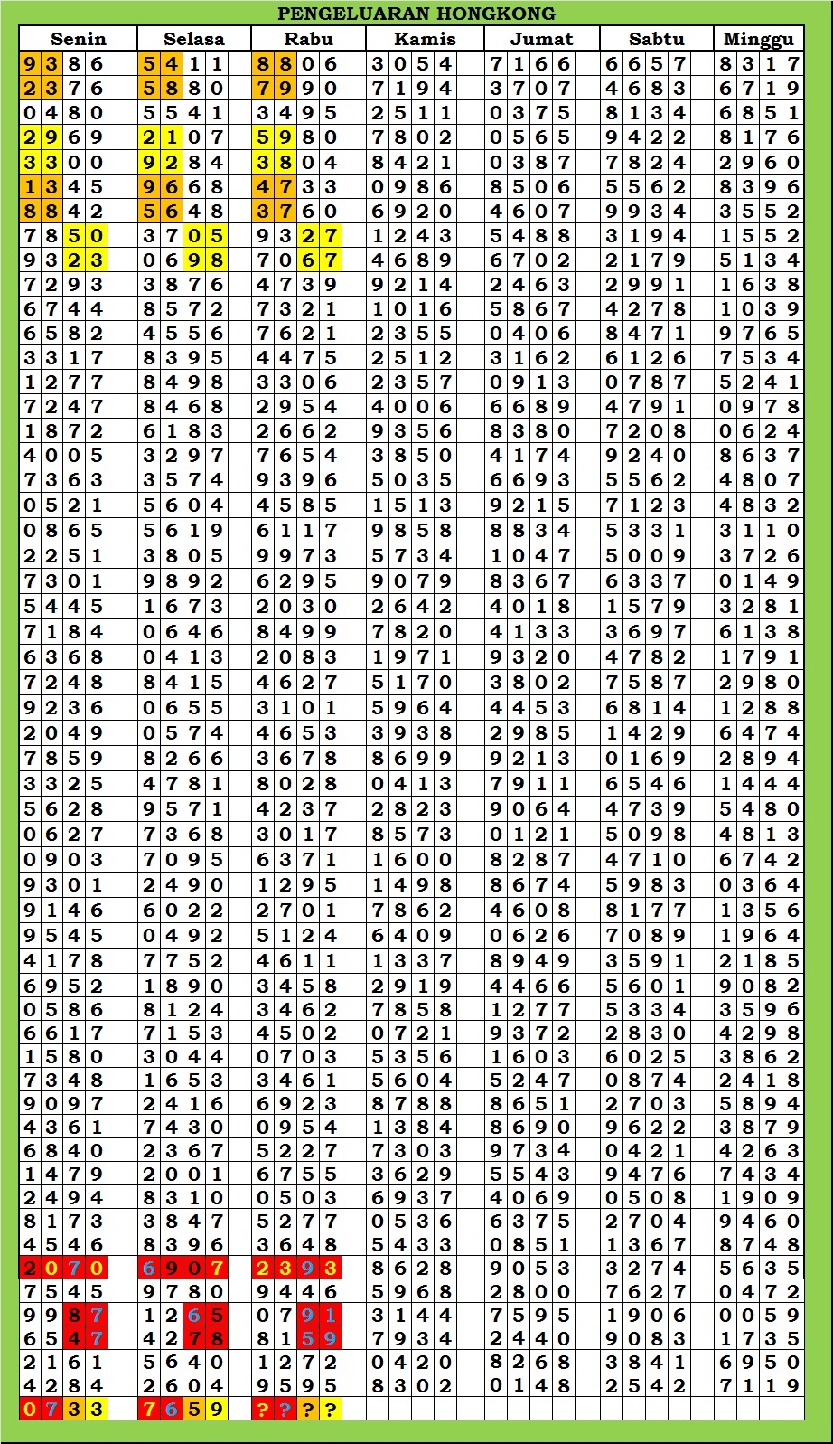 MASTER HONGKONG Rabu, 04-02-2026 Merupakan Prediksi Otomatis yang menggabungkan Metode Kalender Togel Dengan Rumus-rumus kontrol yang sudah terbukti keakuratanya.Gunakan Aplikasi Rekap untuk mendapatkan LN TOP. Harap Maklum Jika kadang meleset MASTER HONGKONG kita. Jadikan ini sebagai perbandingan saja dan tetap UPS