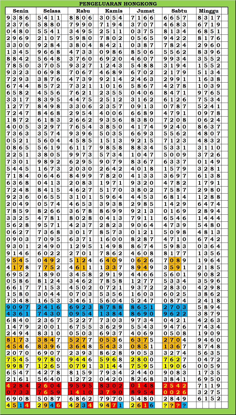 MASTER HONGKONG Rabu, 04-02-2026 Merupakan Prediksi Otomatis yang menggabungkan Metode Kalender Togel Dengan Rumus-rumus kontrol yang sudah terbukti keakuratanya.Gunakan Aplikasi Rekap untuk mendapatkan LN TOP. Harap Maklum Jika kadang meleset MASTER HONGKONG kita. Jadikan ini sebagai perbandingan saja dan tetap UPS