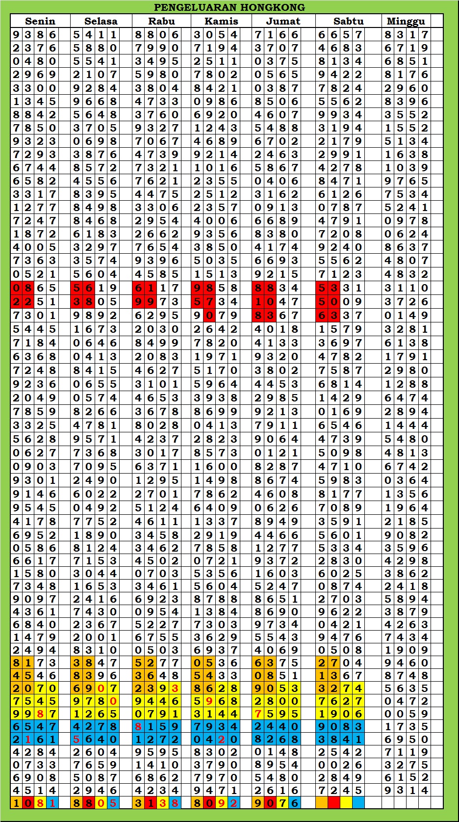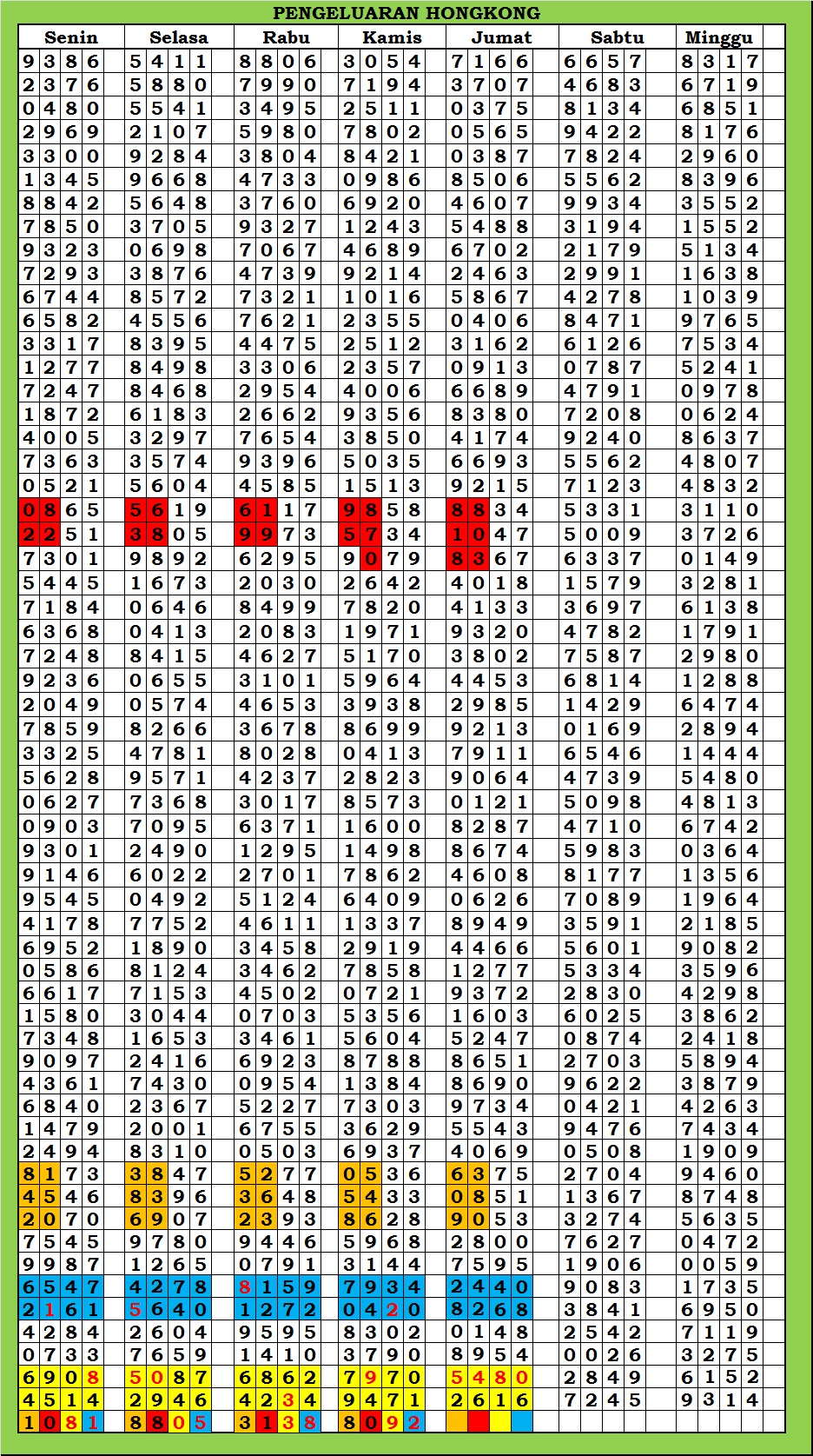 | TABEL DATA HKG VERSI 6D TAHUN 2010 HINGGA SEKARANG |