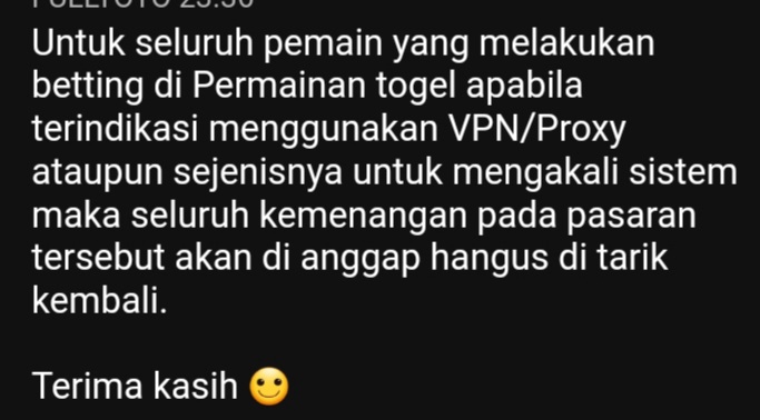 semua postingan komentar SARA, politik, saling menghujat serta saling merendahkan antara prediktor satu dengan yang lainnya jika kami lagi OL mohon maaf langsung kami hapus dan jika telah diperingatkan masih mengulang kami lock datanya