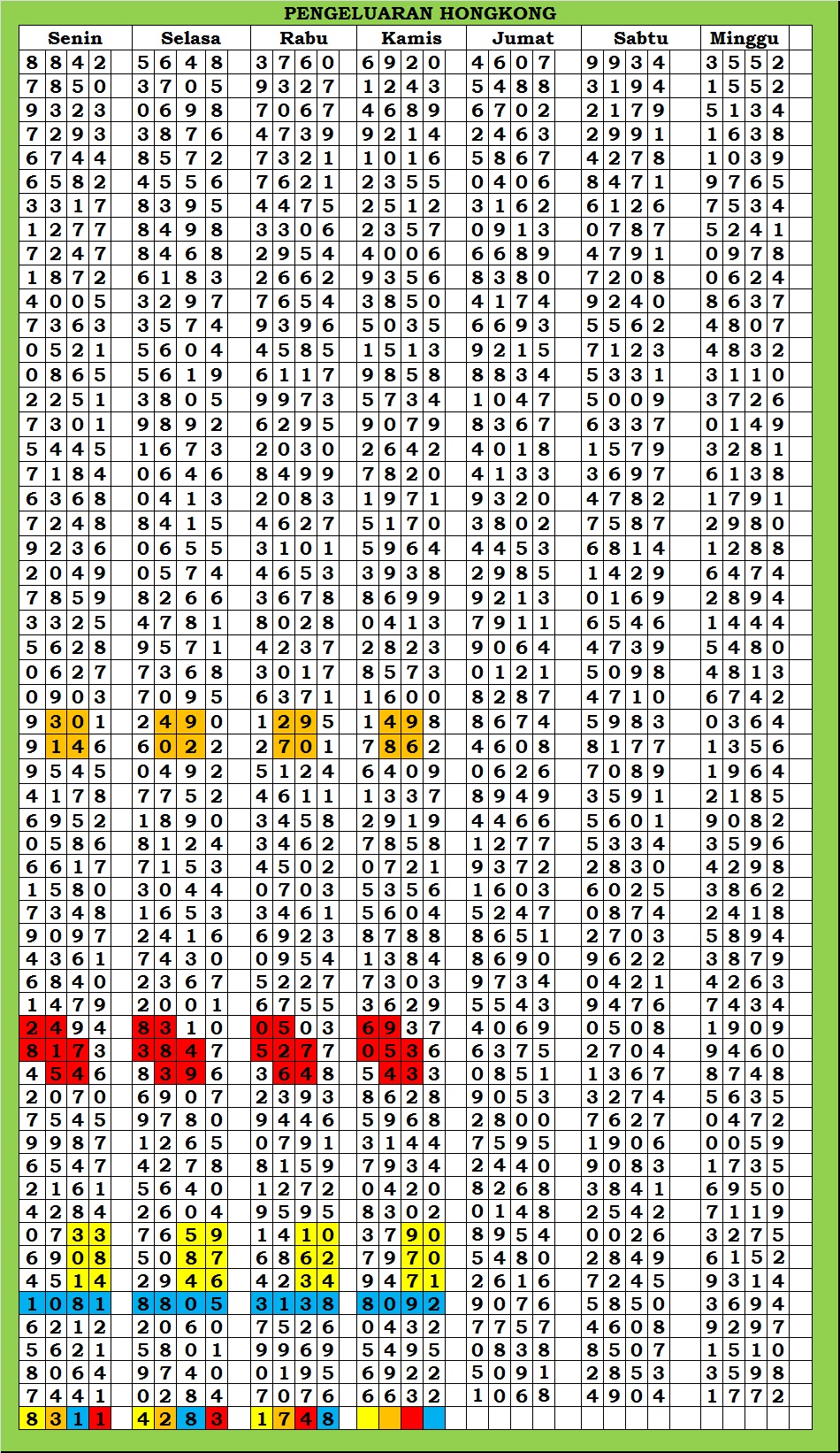 | TABEL DATA HKG VERSI 6D TAHUN 2010 HINGGA SEKARANG |