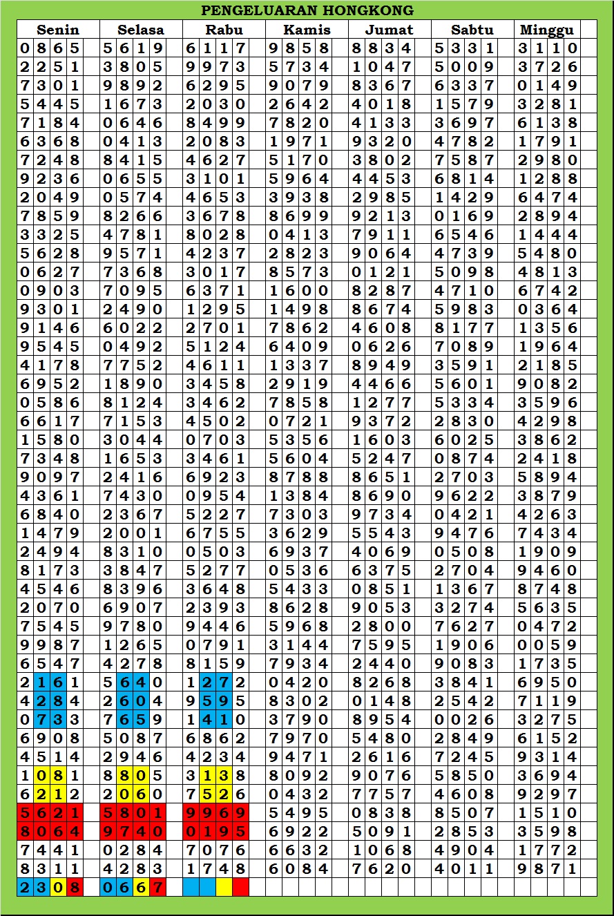 MASTER HONGKONG Rabu, 04-02-2026 Merupakan Prediksi Otomatis yang menggabungkan Metode Kalender Togel Dengan Rumus-rumus kontrol yang sudah terbukti keakuratanya.Gunakan Aplikasi Rekap untuk mendapatkan LN TOP. Harap Maklum Jika kadang meleset MASTER HONGKONG kita. Jadikan ini sebagai perbandingan saja dan tetap UPS