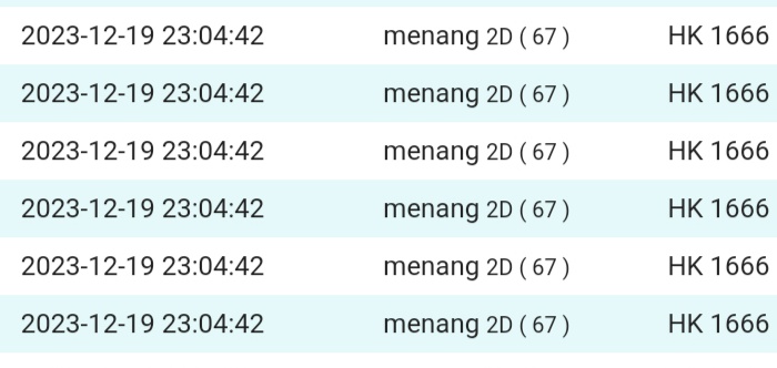 | TABEL DATA HKG VERSI 6D TAHUN 2010 HINGGA SEKARANG |