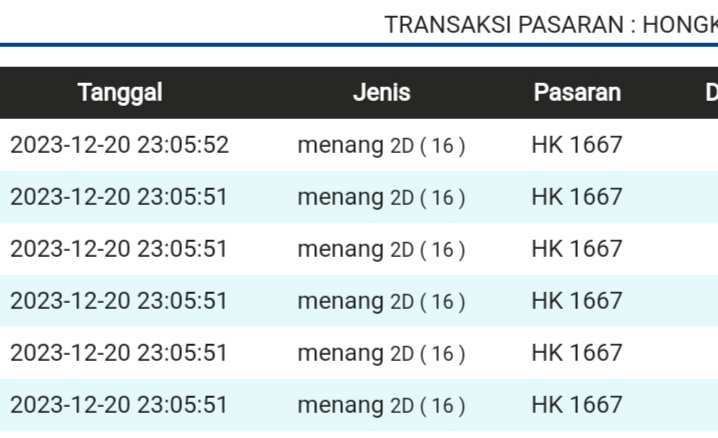 | TABEL DATA HK 6D VERSI HARIAN |
