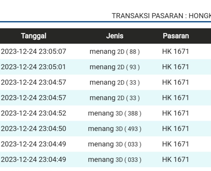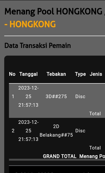 | TABEL DATA HK VERSI 4D TAHUN 2004 HINGGA SEKARANG |