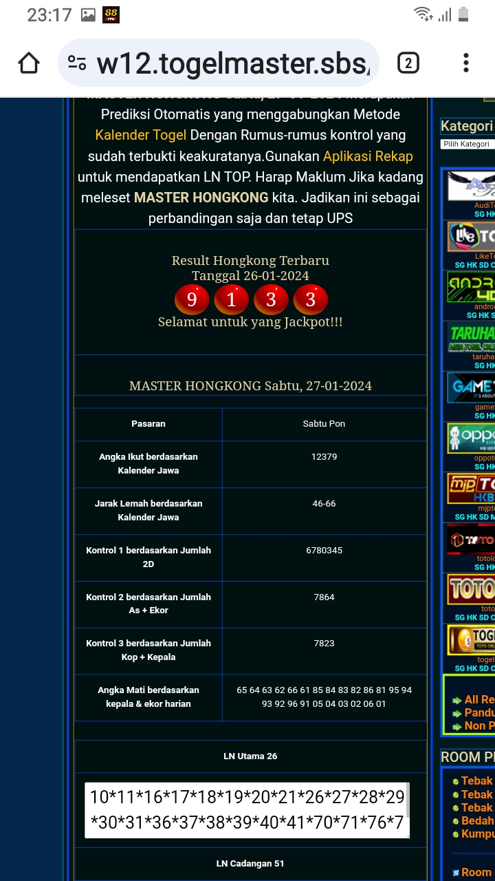 MASTER HONGKONG Selasa, 03-02-2026 Merupakan Prediksi Otomatis yang menggabungkan Metode Kalender Togel Dengan Rumus-rumus kontrol yang sudah terbukti keakuratanya.Gunakan Aplikasi Rekap untuk mendapatkan LN TOP. Harap Maklum Jika kadang meleset MASTER HONGKONG kita. Jadikan ini sebagai perbandingan saja dan tetap UPS