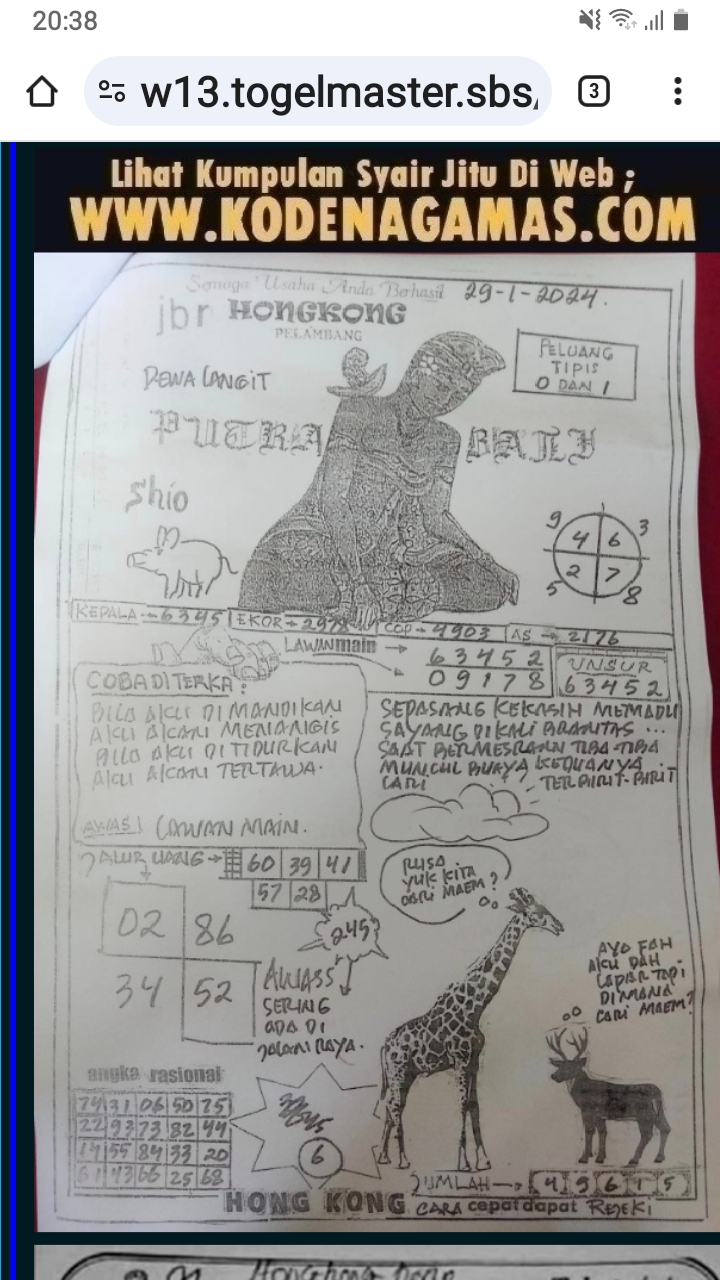 MASTER HONGKONG Selasa, 03-02-2026 Merupakan Prediksi Otomatis yang menggabungkan Metode Kalender Togel Dengan Rumus-rumus kontrol yang sudah terbukti keakuratanya.Gunakan Aplikasi Rekap untuk mendapatkan LN TOP. Harap Maklum Jika kadang meleset MASTER HONGKONG kita. Jadikan ini sebagai perbandingan saja dan tetap UPS