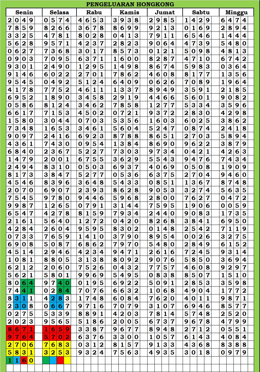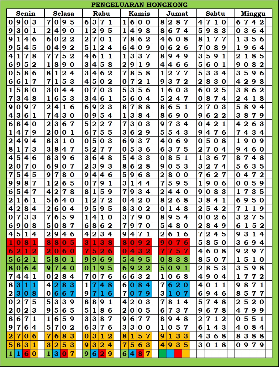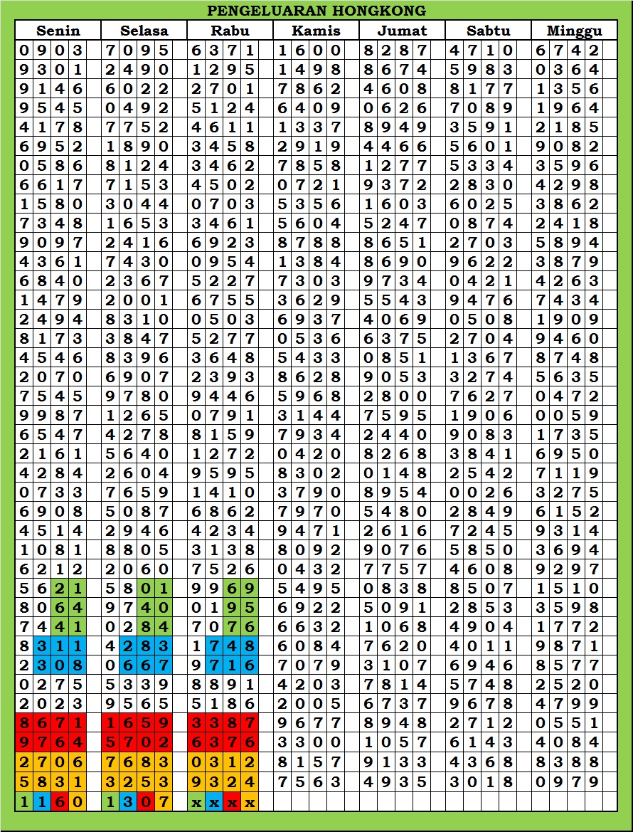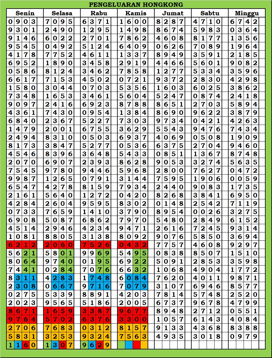 MASTER HONGKONG Selasa, 03-02-2026 Merupakan Prediksi Otomatis yang menggabungkan Metode Kalender Togel Dengan Rumus-rumus kontrol yang sudah terbukti keakuratanya.Gunakan Aplikasi Rekap untuk mendapatkan LN TOP. Harap Maklum Jika kadang meleset MASTER HONGKONG kita. Jadikan ini sebagai perbandingan saja dan tetap UPS