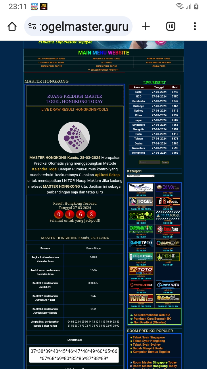 MASTER HONGKONG Selasa, 03-02-2026 Merupakan Prediksi Otomatis yang menggabungkan Metode Kalender Togel Dengan Rumus-rumus kontrol yang sudah terbukti keakuratanya.Gunakan Aplikasi Rekap untuk mendapatkan LN TOP. Harap Maklum Jika kadang meleset MASTER HONGKONG kita. Jadikan ini sebagai perbandingan saja dan tetap UPS