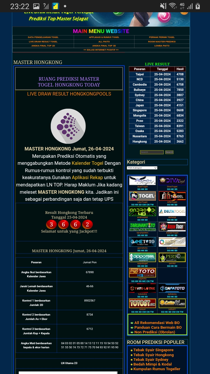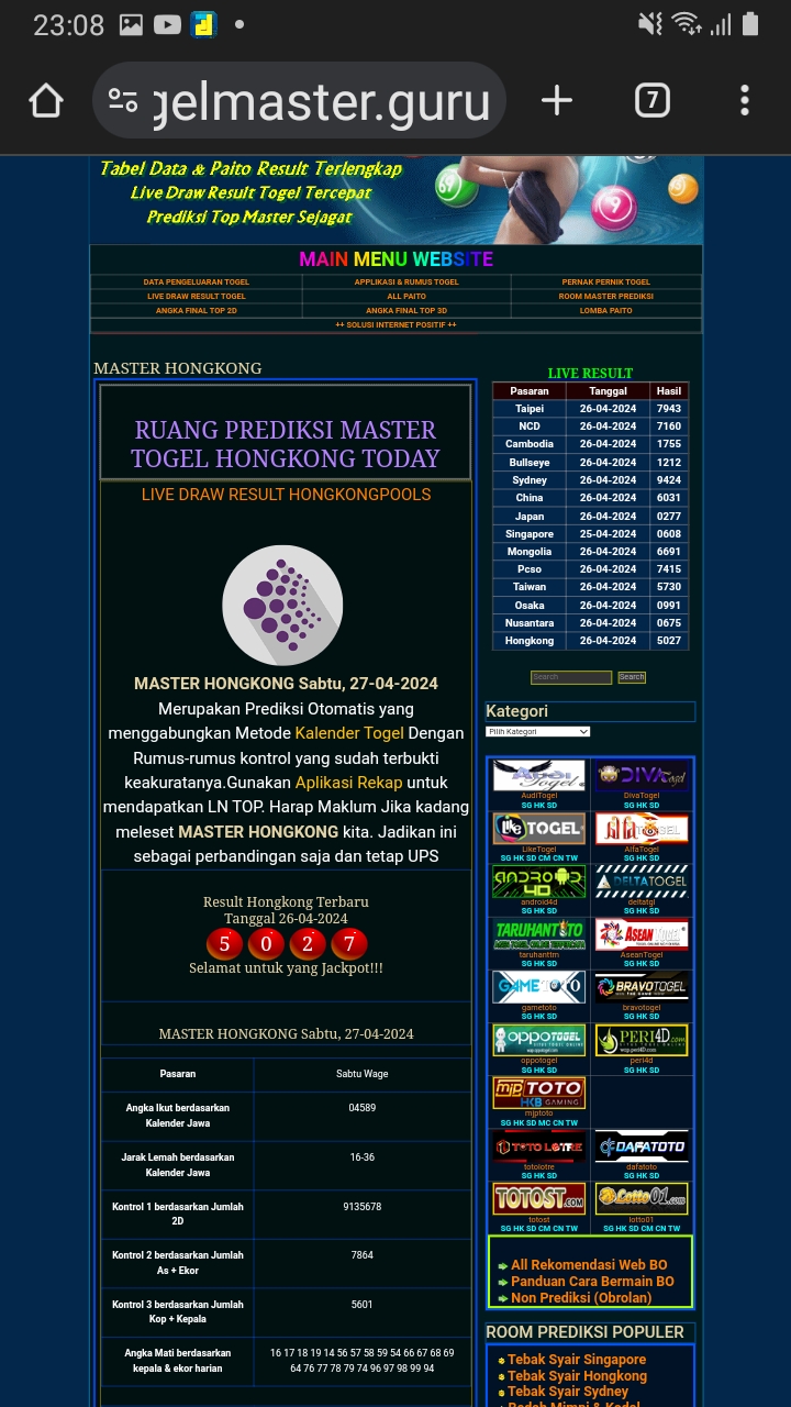 MASTER HONGKONG Senin, 02-02-2026 Merupakan Prediksi Otomatis yang menggabungkan Metode Kalender Togel Dengan Rumus-rumus kontrol yang sudah terbukti keakuratanya.Gunakan Aplikasi Rekap untuk mendapatkan LN TOP. Harap Maklum Jika kadang meleset MASTER HONGKONG kita. Jadikan ini sebagai perbandingan saja dan tetap UPS