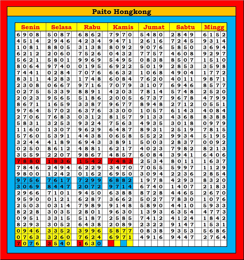 MASTER HONGKONG Senin, 02-02-2026 Merupakan Prediksi Otomatis yang menggabungkan Metode Kalender Togel Dengan Rumus-rumus kontrol yang sudah terbukti keakuratanya.Gunakan Aplikasi Rekap untuk mendapatkan LN TOP. Harap Maklum Jika kadang meleset MASTER HONGKONG kita. Jadikan ini sebagai perbandingan saja dan tetap UPS