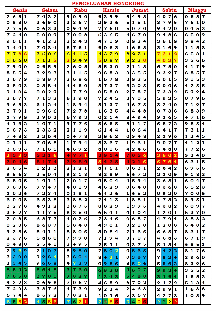 | TABEL DATA HKG VERSI 6D TAHUN 2010 HINGGA SEKARANG |