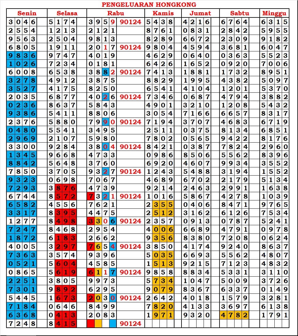 MASTER HONGKONG Sabtu, 07-02-2026 Merupakan Prediksi Otomatis yang menggabungkan Metode Kalender Togel Dengan Rumus-rumus kontrol yang sudah terbukti keakuratanya.Gunakan Aplikasi Rekap untuk mendapatkan LN TOP. Harap Maklum Jika kadang meleset MASTER HONGKONG kita. Jadikan ini sebagai perbandingan saja dan tetap UPS