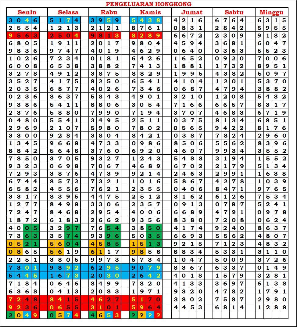 | TABEL DATA HK VERSI 4D TAHUN 2004 HINGGA SEKARANG |