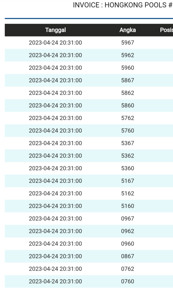 | TABEL DATA HK VERSI 4D TAHUN 2004 HINGGA SEKARANG |