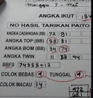 dapat tapi mengesalkan…karna rumus kawn habis kenak silang 31/34/32/39 pokok mya yg bawa 3 kenk semua, gimana lagi…nasi udah jadi bubur ayam,hari yg mengesal kan ..dia (kawantu) paket 2/6 300k..26/27/29x 30k bb