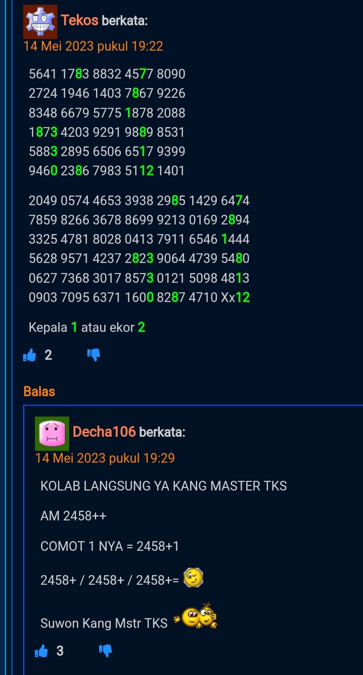 semua postingan komentar SARA, politik, saling menghujat serta saling merendahkan antara prediktor satu dengan yang lainnya jika kami lagi OL mohon maaf langsung kami hapus dan jika telah diperingatkan masih mengulang kami lock datanya