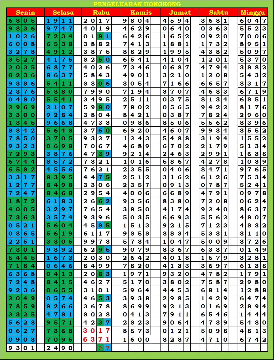 MASTER HONGKONG Jumat, 06-02-2026 Merupakan Prediksi Otomatis yang menggabungkan Metode Kalender Togel Dengan Rumus-rumus kontrol yang sudah terbukti keakuratanya.Gunakan Aplikasi Rekap untuk mendapatkan LN TOP. Harap Maklum Jika kadang meleset MASTER HONGKONG kita. Jadikan ini sebagai perbandingan saja dan tetap UPS