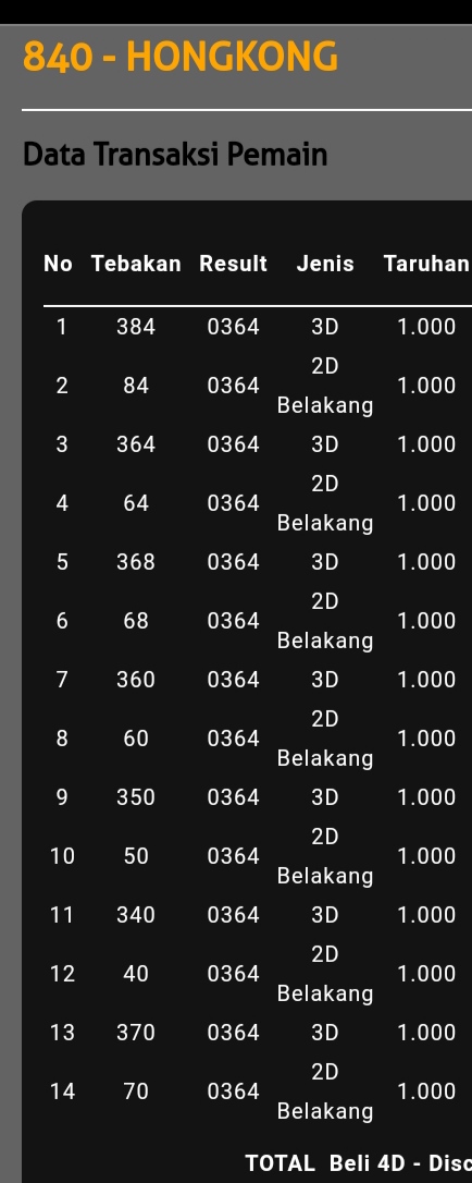 | TABEL DATA HK VERSI 4D TAHUN 2004 HINGGA SEKARANG |