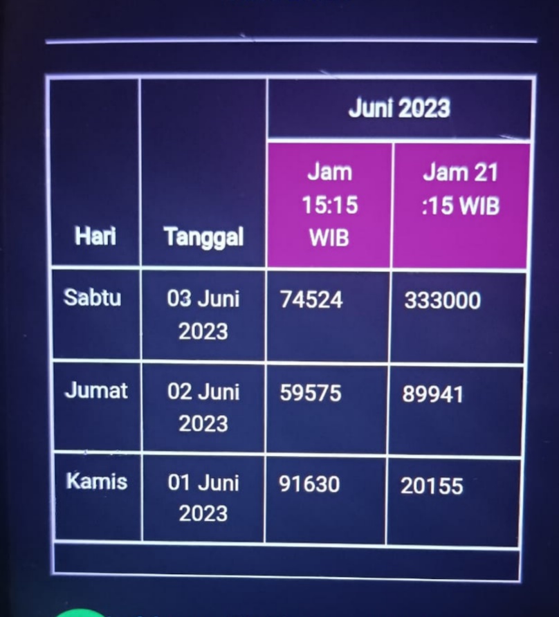 Prediksi Ini Berubah secara otomatis sesuai hari dan result pasaran masing-masing. Untuk melihat prediksi sebelumnya klik tombol nomor hitam diatas
