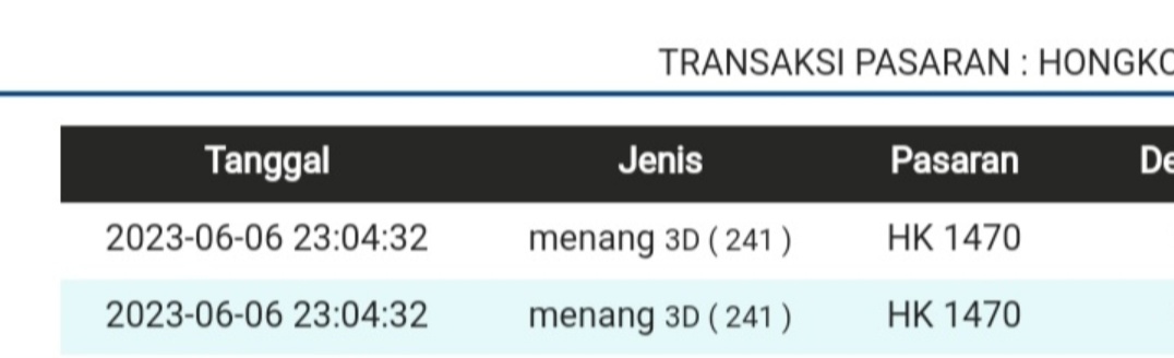 | TABEL DATA HKG VERSI 6D TAHUN 2010 HINGGA SEKARANG |