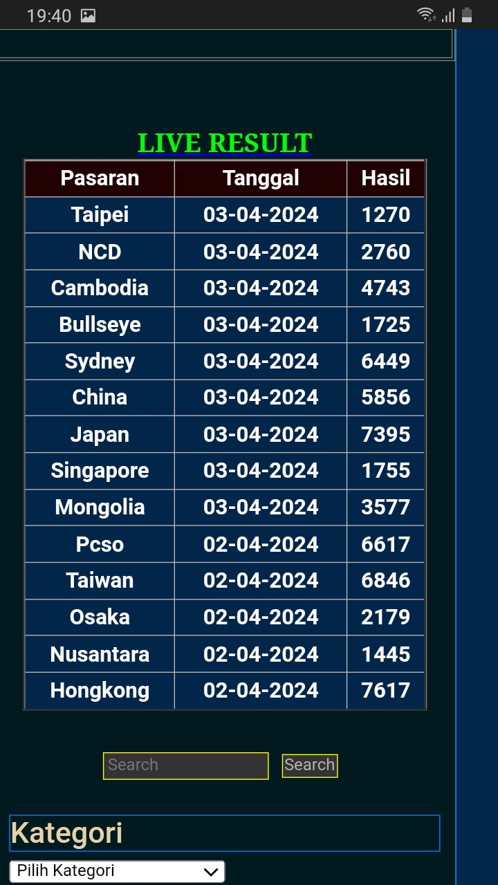 Prediksi Ini Berubah secara otomatis sesuai hari dan result pasaran masing-masing. Untuk melihat prediksi sebelumnya klik tombol nomor hitam diatas