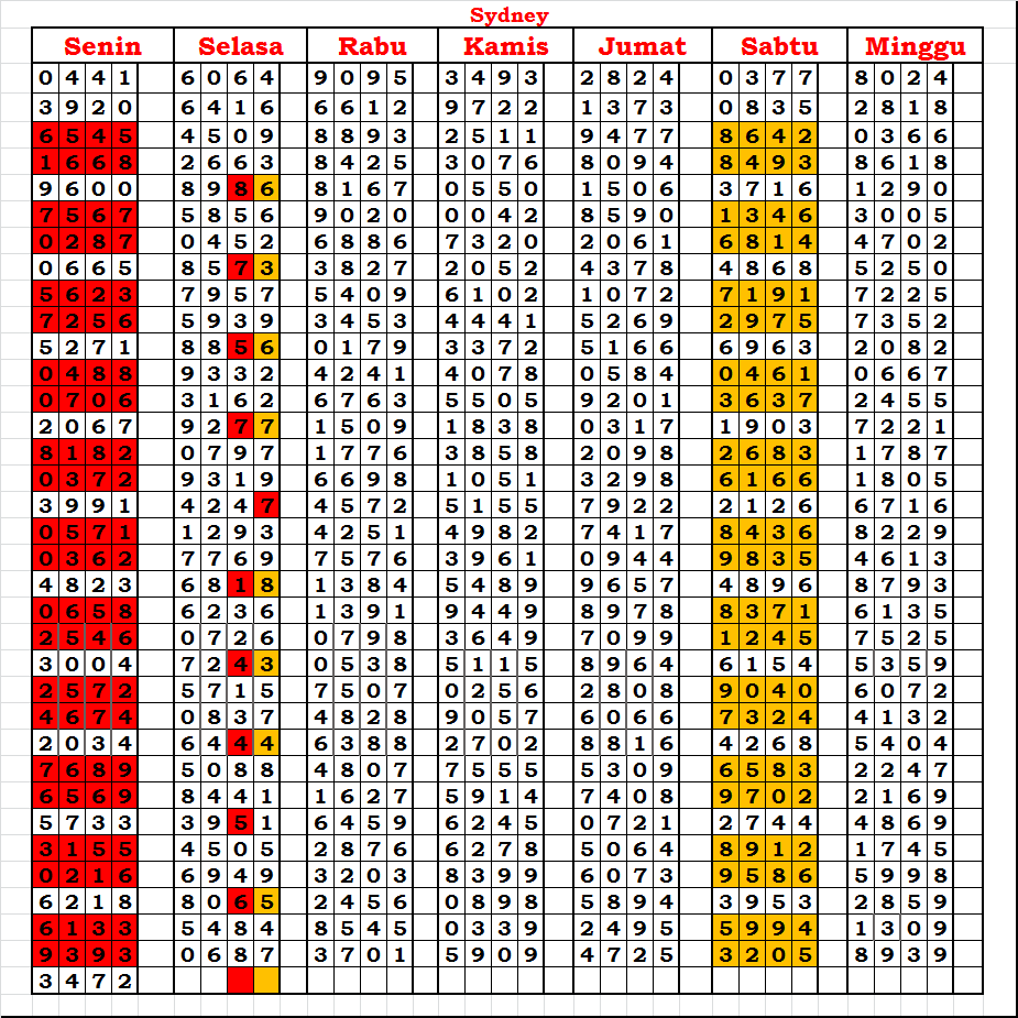 | TABEL DATA SYDNEY 6D VERSI HARIAN |