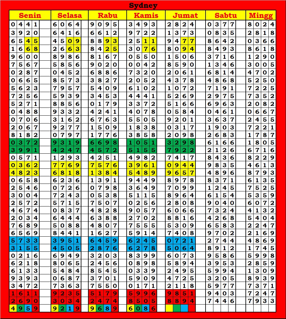 | TABEL DATA SYDNEY 6D VERSI HARIAN |