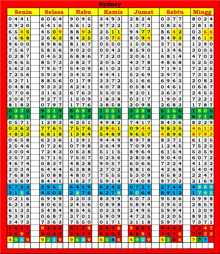 | TABEL DATA SYDNEY 6D VERSI HARIAN |