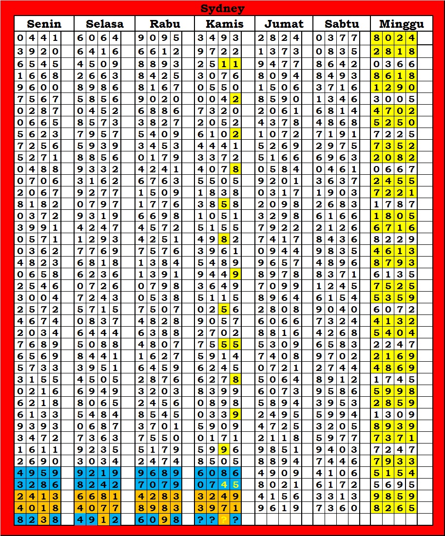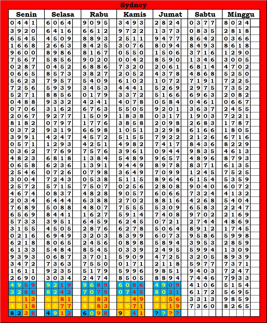 | TABEL DATA SYDNEY 6D VERSI HARIAN |