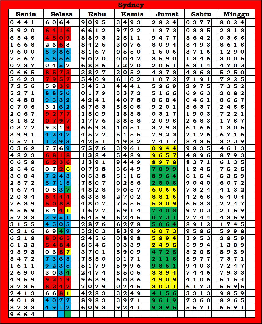 | TABEL DATA SYDNEY 6D VERSI HARIAN |