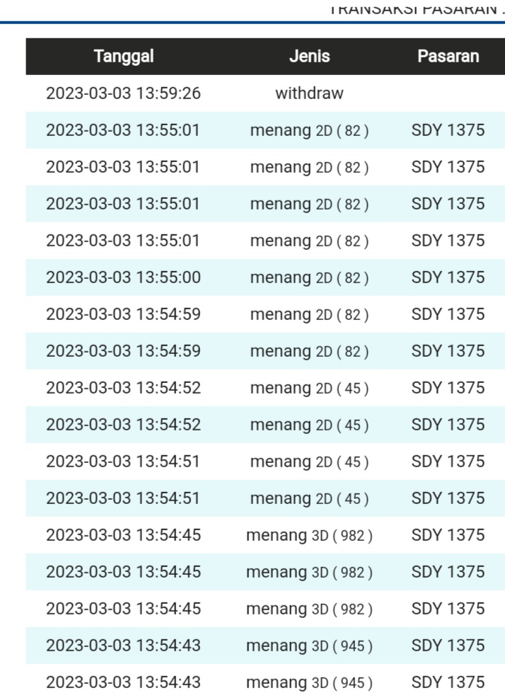 | TABEL DATA SYDNEY 6D VERSI HARIAN |