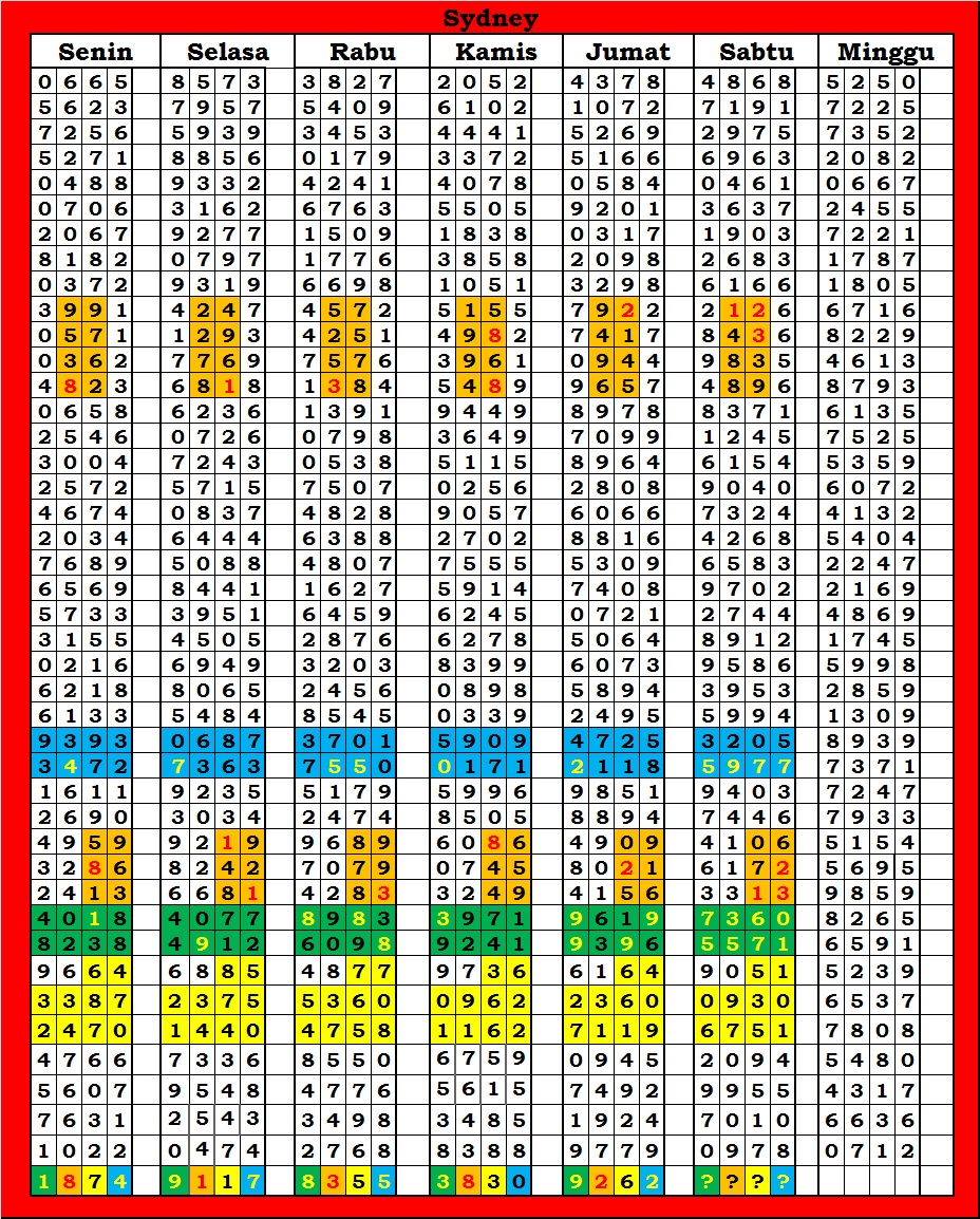 | TABEL DATA SYDNEY 6D VERSI HARIAN |
