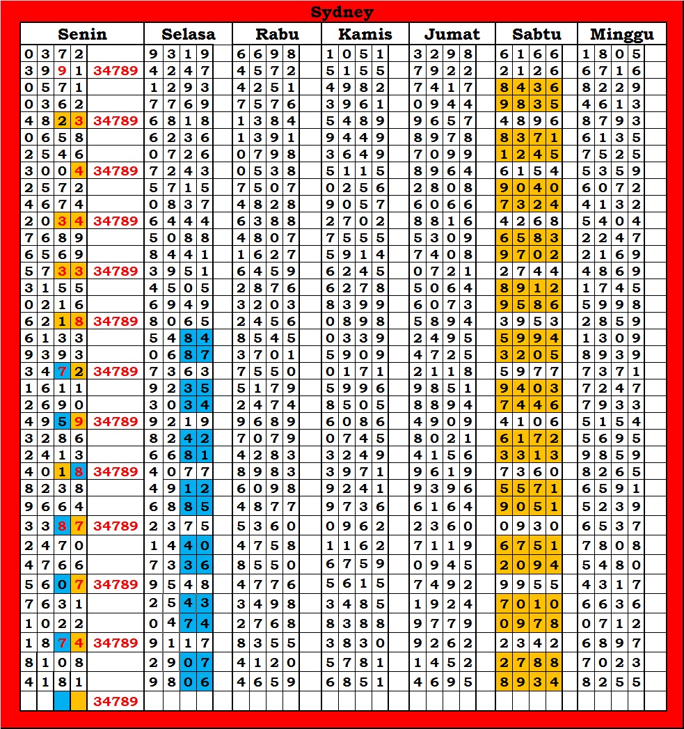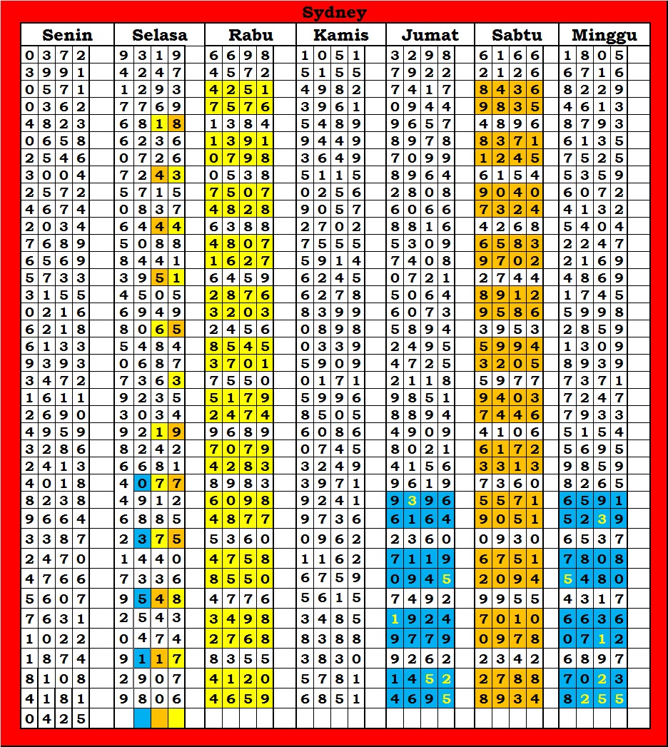 | TABEL DATA SYDNEY 6D VERSI HARIAN |