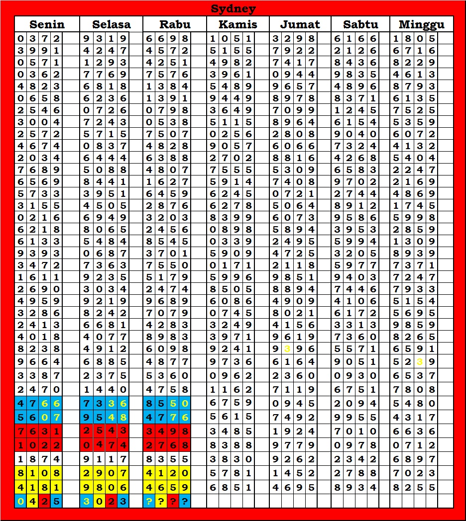 | TABEL DATA SYDNEY 6D VERSI HARIAN |