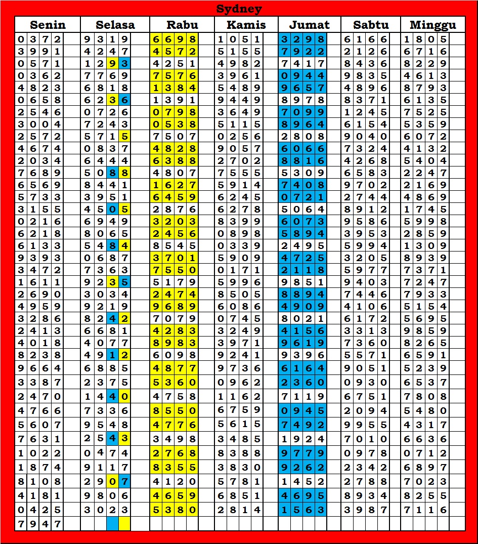 | TABEL DATA SYDNEY 6D VERSI HARIAN |