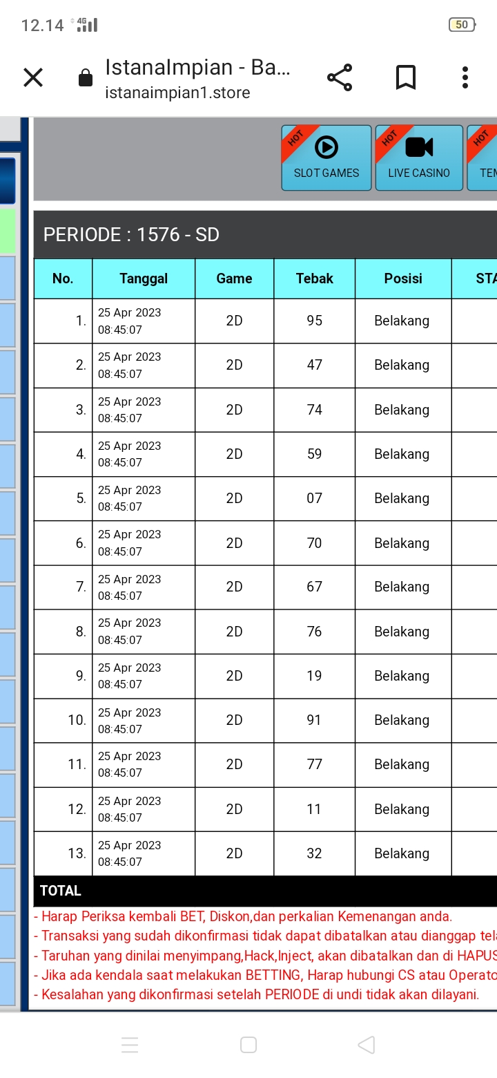 semua postingan komentar SARA, politik, saling menghujat serta saling merendahkan antara prediktor satu dengan yang lainnya jika kami lagi OL mohon maaf langsung kami hapus dan jika telah diperingatkan masih mengulang kami lock datanya