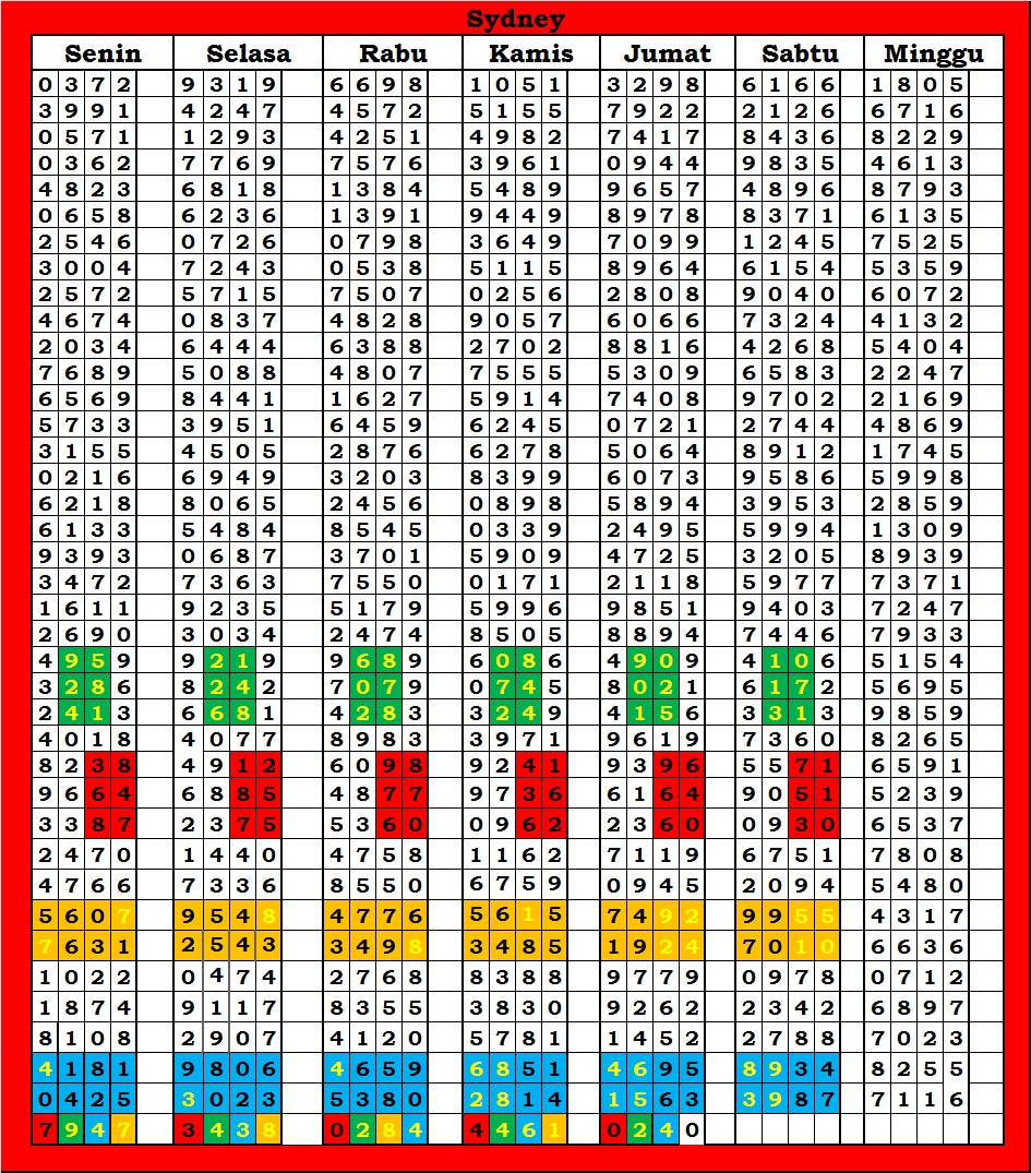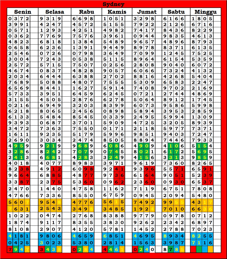 | TABEL DATA SYDNEY 6D VERSI HARIAN |